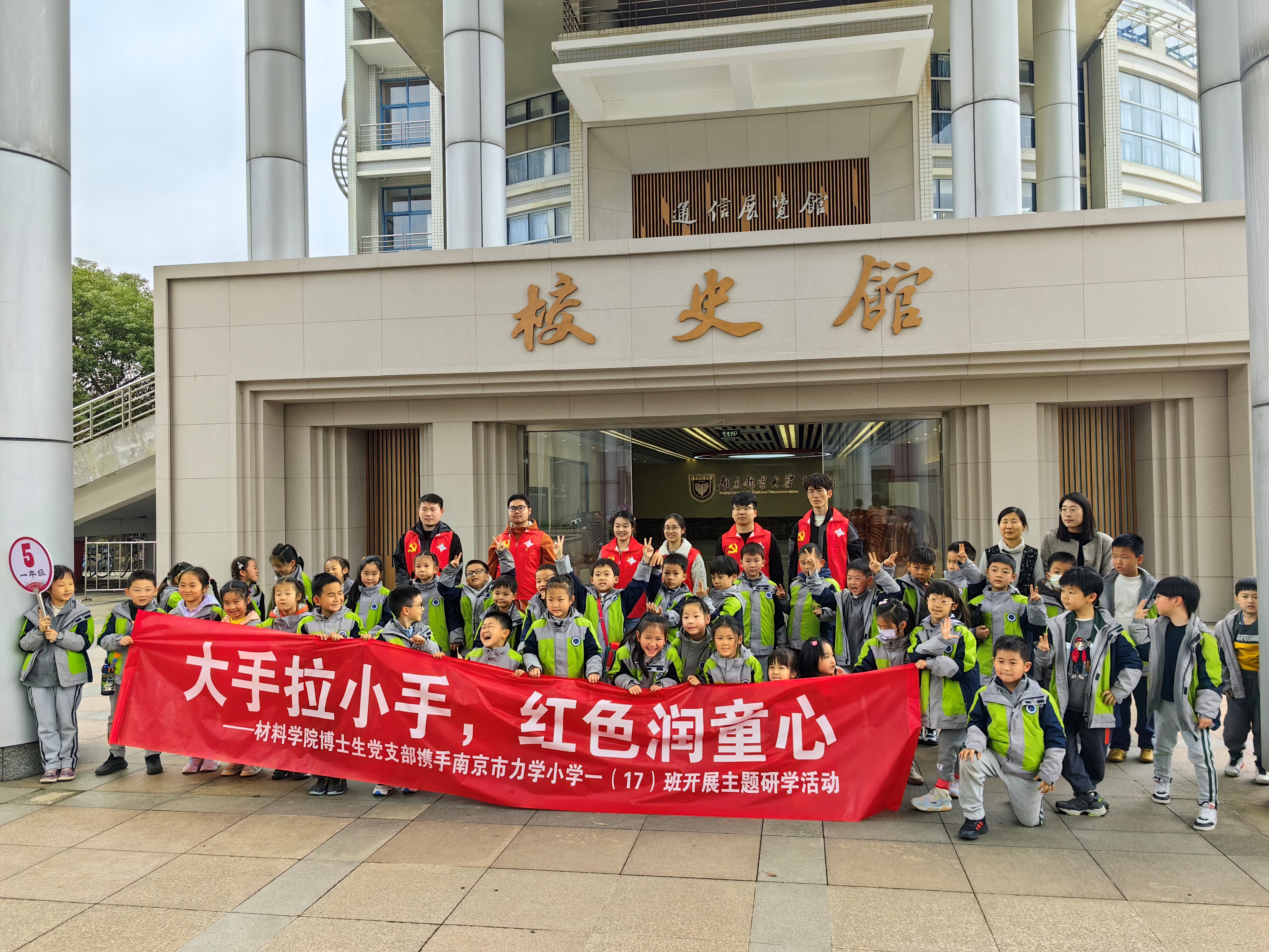 2024年3月28日,开云体育app下载 博士生党支部携手南京市力学小学一(17)班开展“大手拉小手,红色润童心”主题研学活动。博士生党支部部分党员、入党积极分子以及南京市力学小学一(17)班师生一行近60人参加。本次活动是博士生党支部开展的面向社会的党群共建志愿服务活动,得到了开云体育app下载 党委以及开云体育app下载 新能源材料与器件系党支部的大力支持。