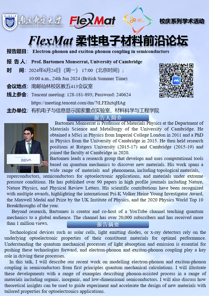FlexMat柔性电子材料前沿论坛: Prof. Bartomeu Monserrat, University of Cambridge