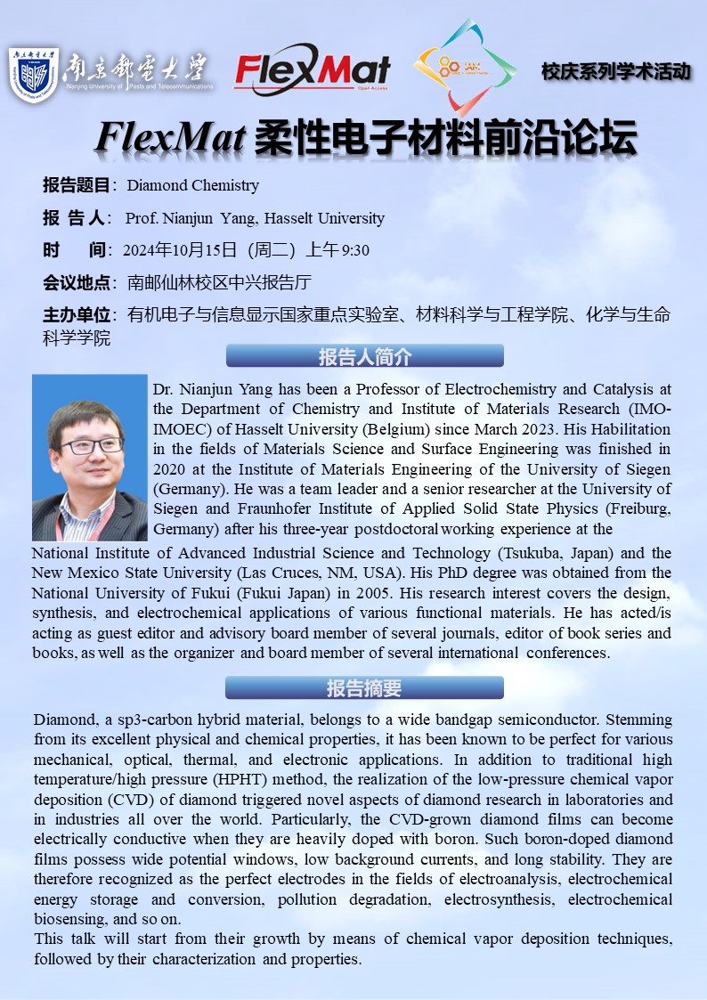 FlexMat柔性电子材料前沿论坛:Prof. Nianjun Yang, Hasselt University