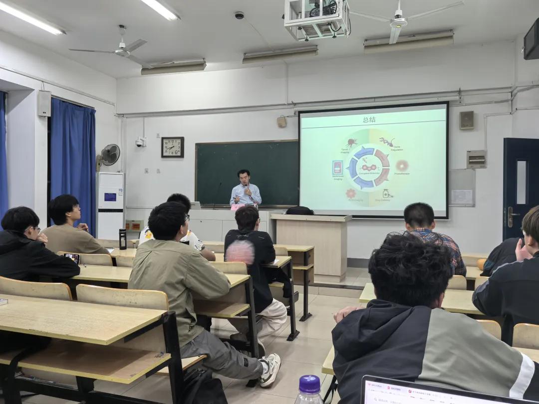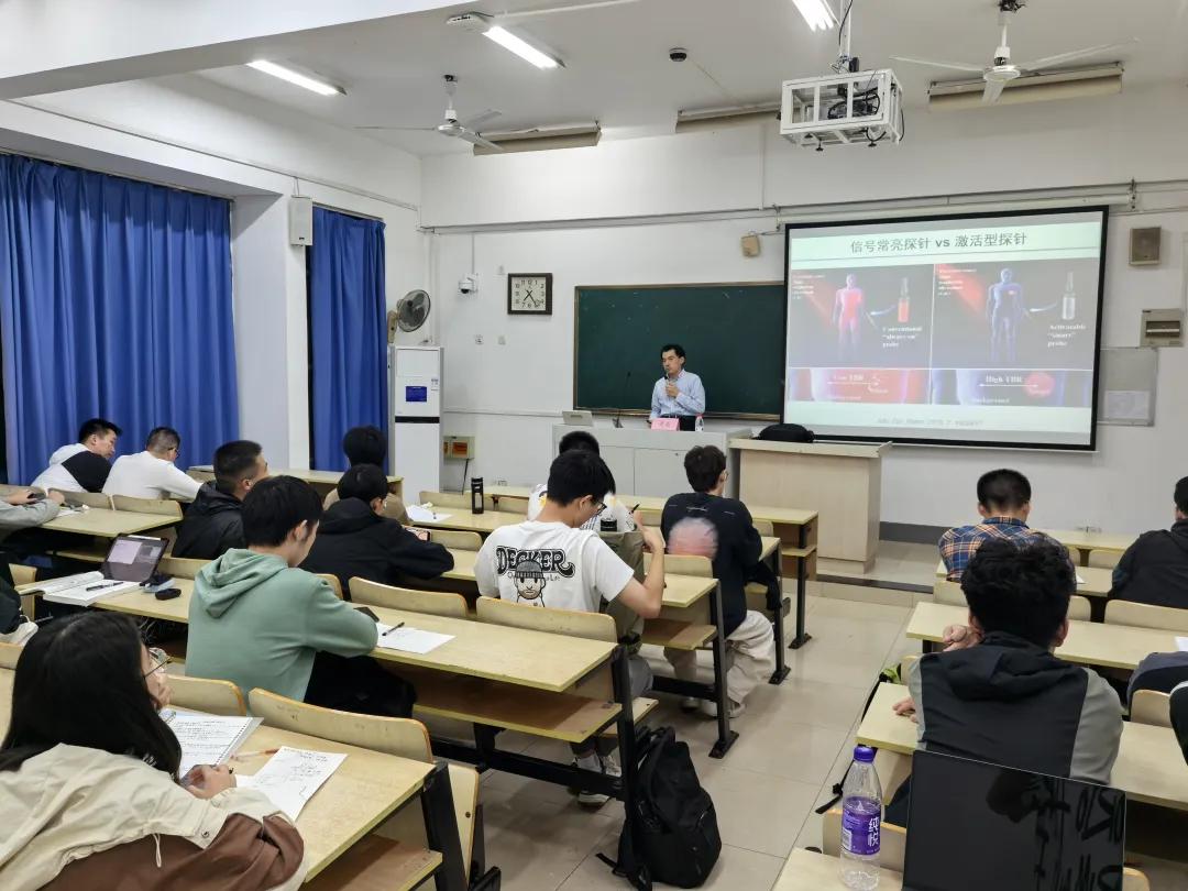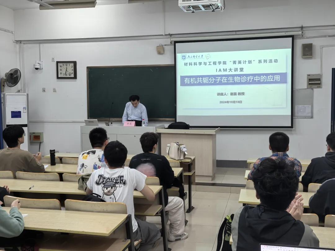 2024年10月18日晚上,教3-103,开云体育app下载 邀请谢晨教授为“菁英计划”学员开展题为《有机共轭分子在生物诊疗中的应用》的讲座。讲座由22级本科生辅导员侍茜茜老师主持,全体2023级和2024级“菁英计划”学员参加学习。