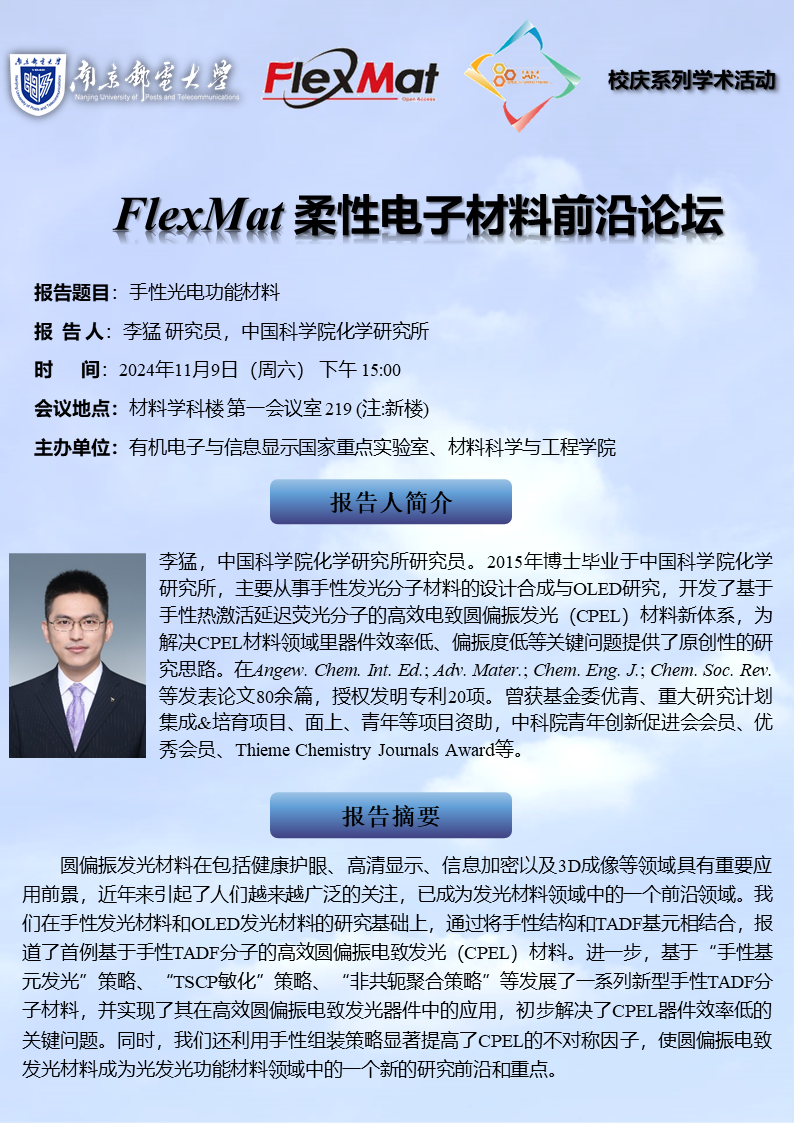 FlexMat柔性电子材料前沿论坛:中国科开云体育app下载 化学研究所 李猛 研究员