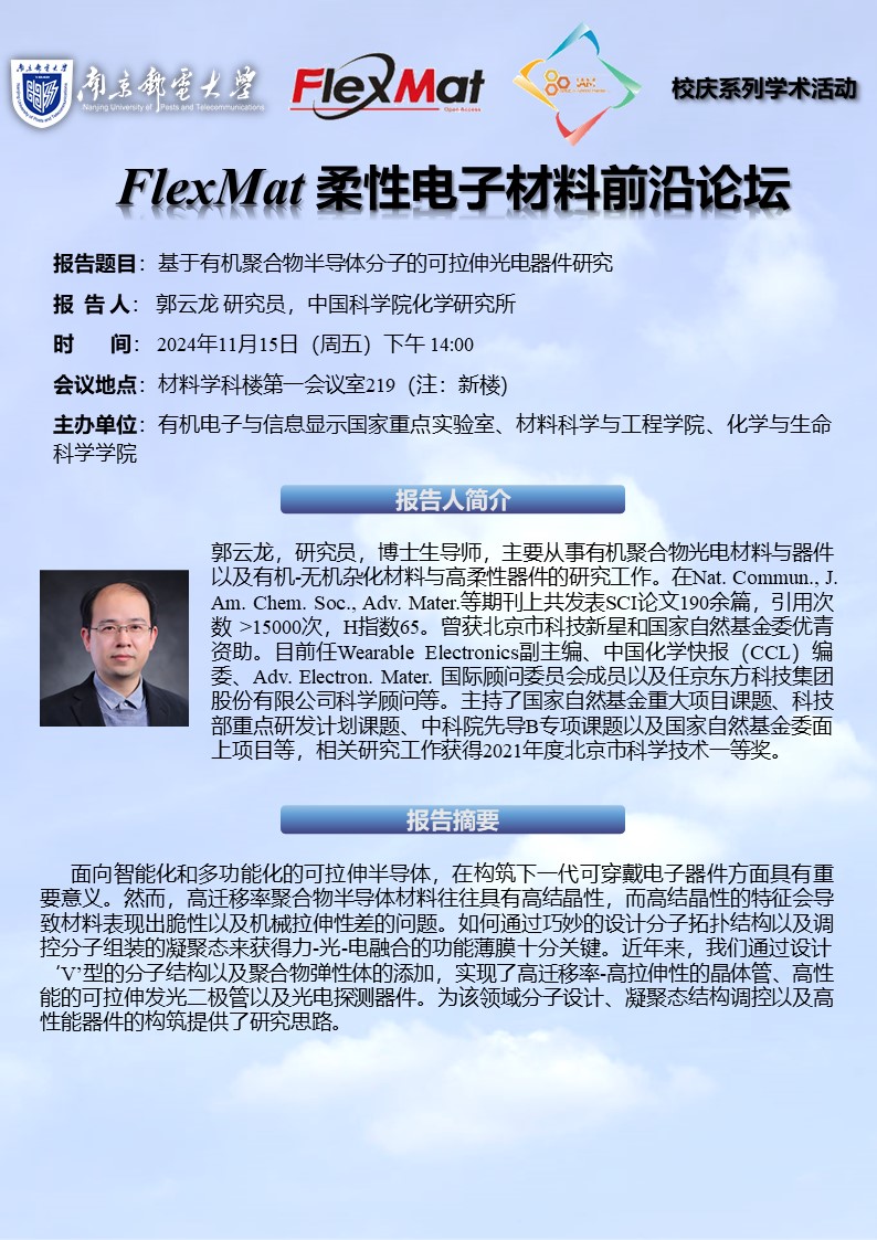 FlexMat柔性电子材料前沿论坛:中国科开云体育app下载 化学研究所 郭云龙 研究员