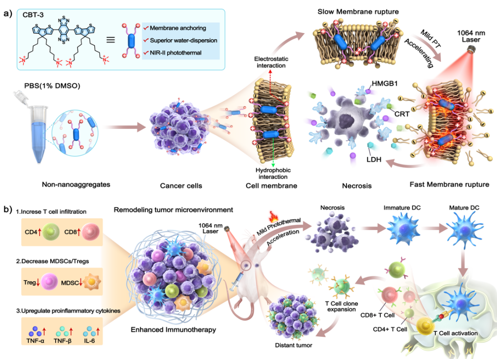膜锚定NIR-II分子的光热效应促进细胞质膜破裂,改善抗肿瘤的免疫应答机制
