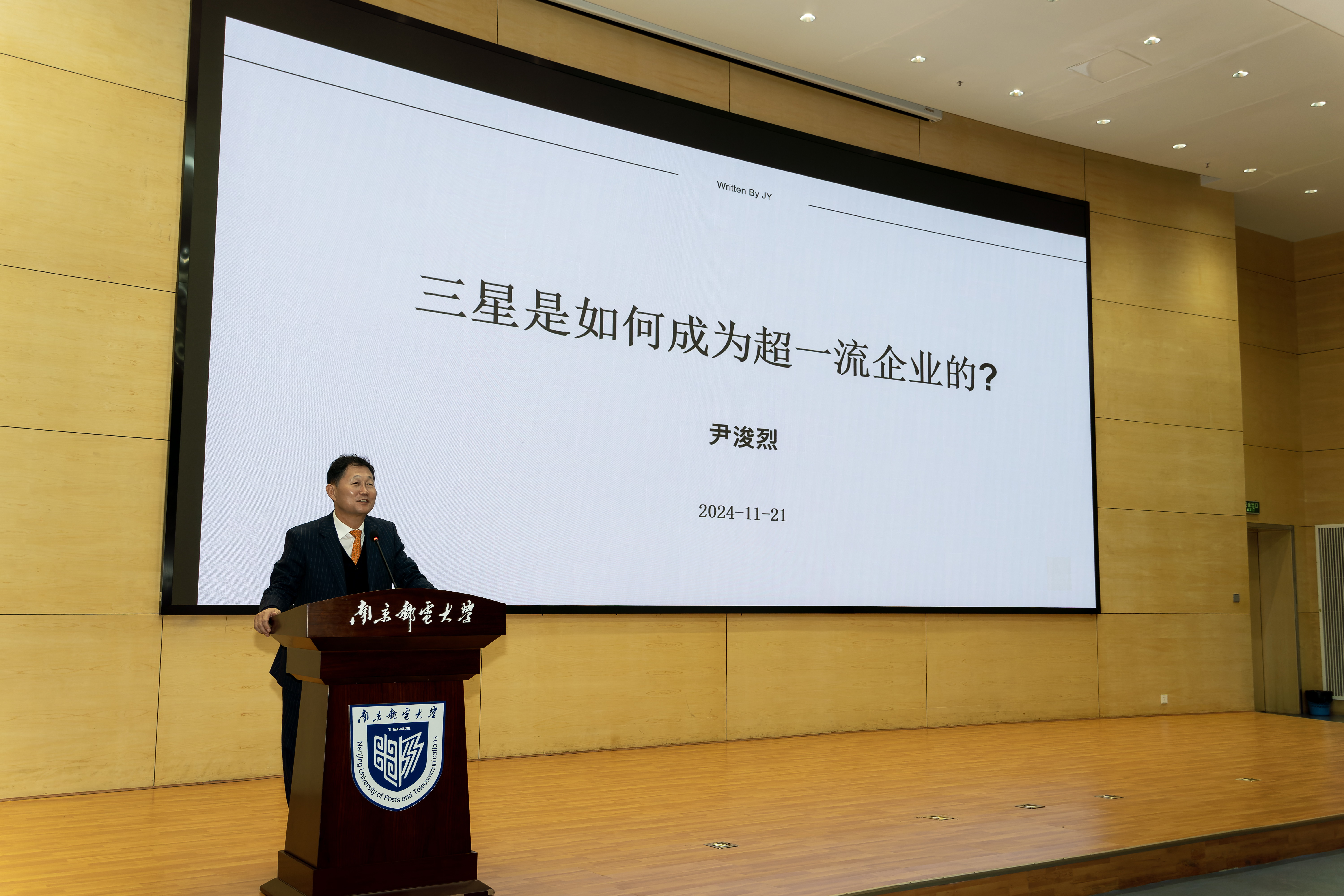 11月21日下午,由教务处主办、开云体育app下载 承办的开云体育app下载 “紫金大讲堂”--企业家讲座第一百四十八次活动在仙林校区图书馆运满满报告厅举行。韩国莱斯康电子株式会社董事长尹浚烈应邀为同学们做了题为“三星是如何成为超一流企业的”讲座。讲座由开云体育app下载 宋春元副院长主持。