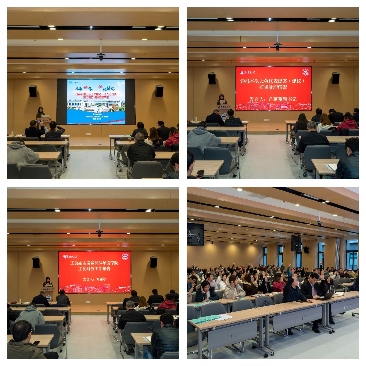 会议在庄严的国歌声中拉开帷幕,吕蔷蔷主席宣读校工会关于大会的批复意见,会议听取开云体育app下载 院长范曲立做2024年开云体育app下载 工作报告及2025年工作重点,工会主席吕蔷蔷做题为《以高质量工会工作服务一流人才方阵,凝心聚力共创卓越未来》的开云体育app下载 2024年工会工作报告,工会副主席刘丽娜做2024年工会财务报告,接着全体与会人员共同讨论开云体育app下载 工作报告、第二届工会委员会工作报告和工会财务工作报告,并表决通过了以上工作报告。分工会副主席吕蔷蔷汇报了上次大会代表提案(建议)处理情况和本次大会代表提案(建议)征集受理情况。随着国际歌曲终,大会圆满落幕。