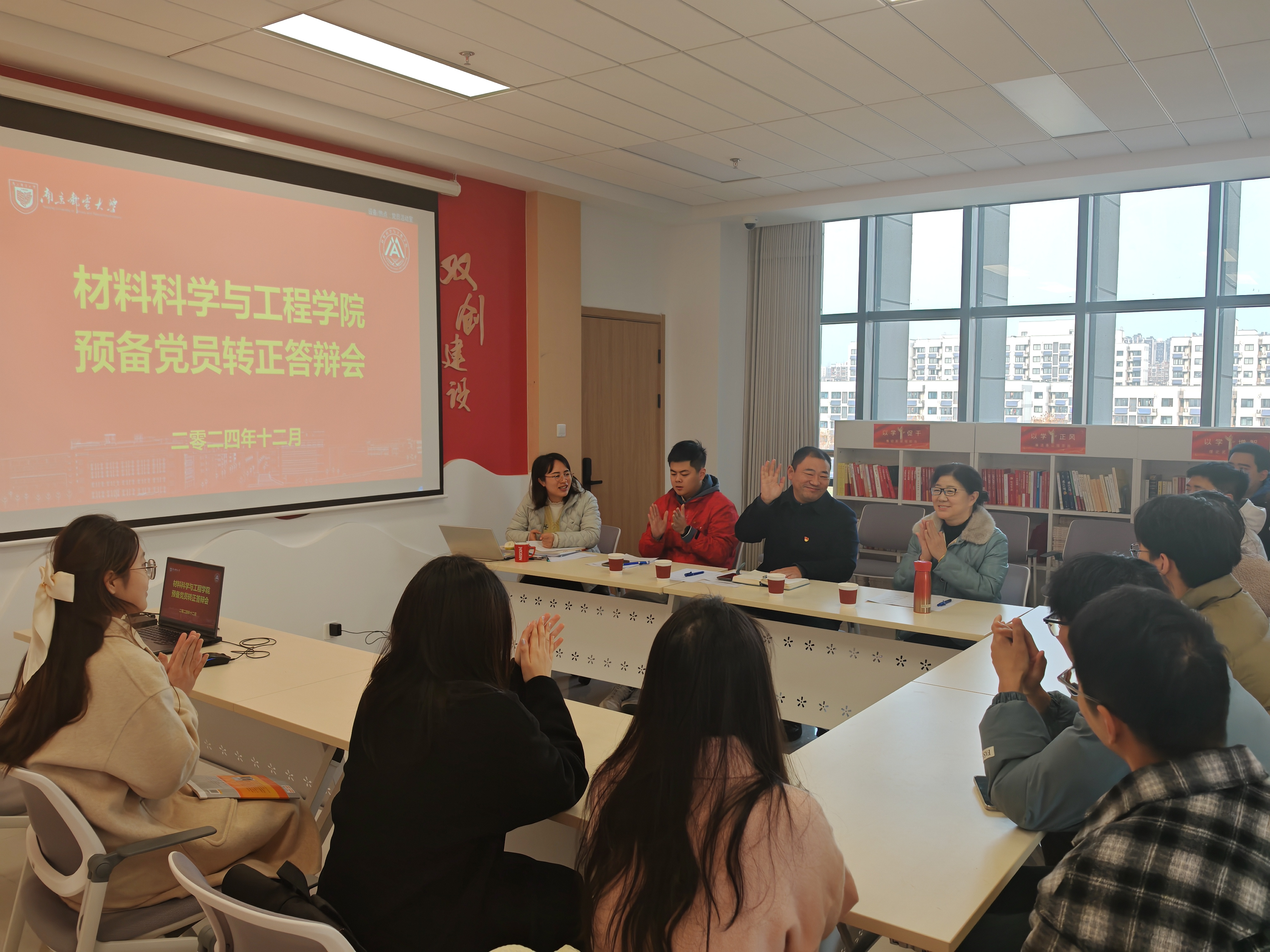 此次转正答辩大会分为个人陈述、现场问答、现场评议三个环节。11名预备党员依次进行了自我陈述。他们详细汇报了在预备期内,自己在思想政治觉悟、学习成绩、工作表现及生活作风等方面的进展,充分展示了自己在党的教育和引导下,逐步成长为具有坚定党性和社会责任感的青年党员。同时,答辩人也诚恳地对自身在学习、工作、生活中的不足进行总结,提出了改进的方向和措施。每位同学都展现出高度的政治觉悟,表达了早日转正成为一名正式共产党员的坚定决心。