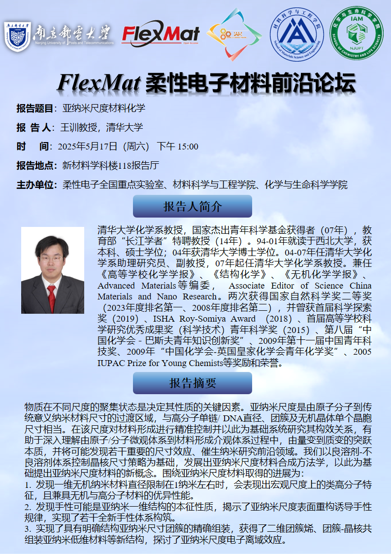 FlexMat柔性电子材料前沿论坛: 清华大学 王训 教授
