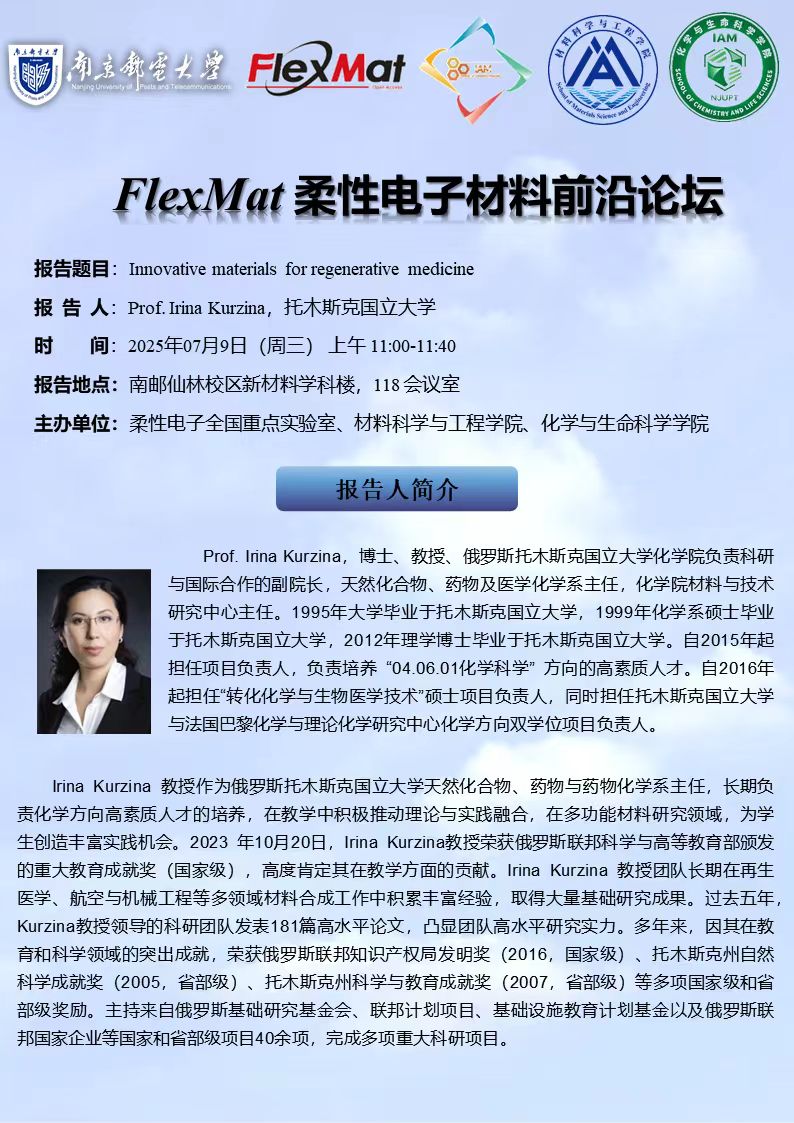 FlexMat柔性电子材料前沿论坛: 俄罗斯科开云体育app下载 通讯院士、俄罗斯托木斯克国家医学中心肿瘤研究所 Prof. Nadezhda Cherdyntseva