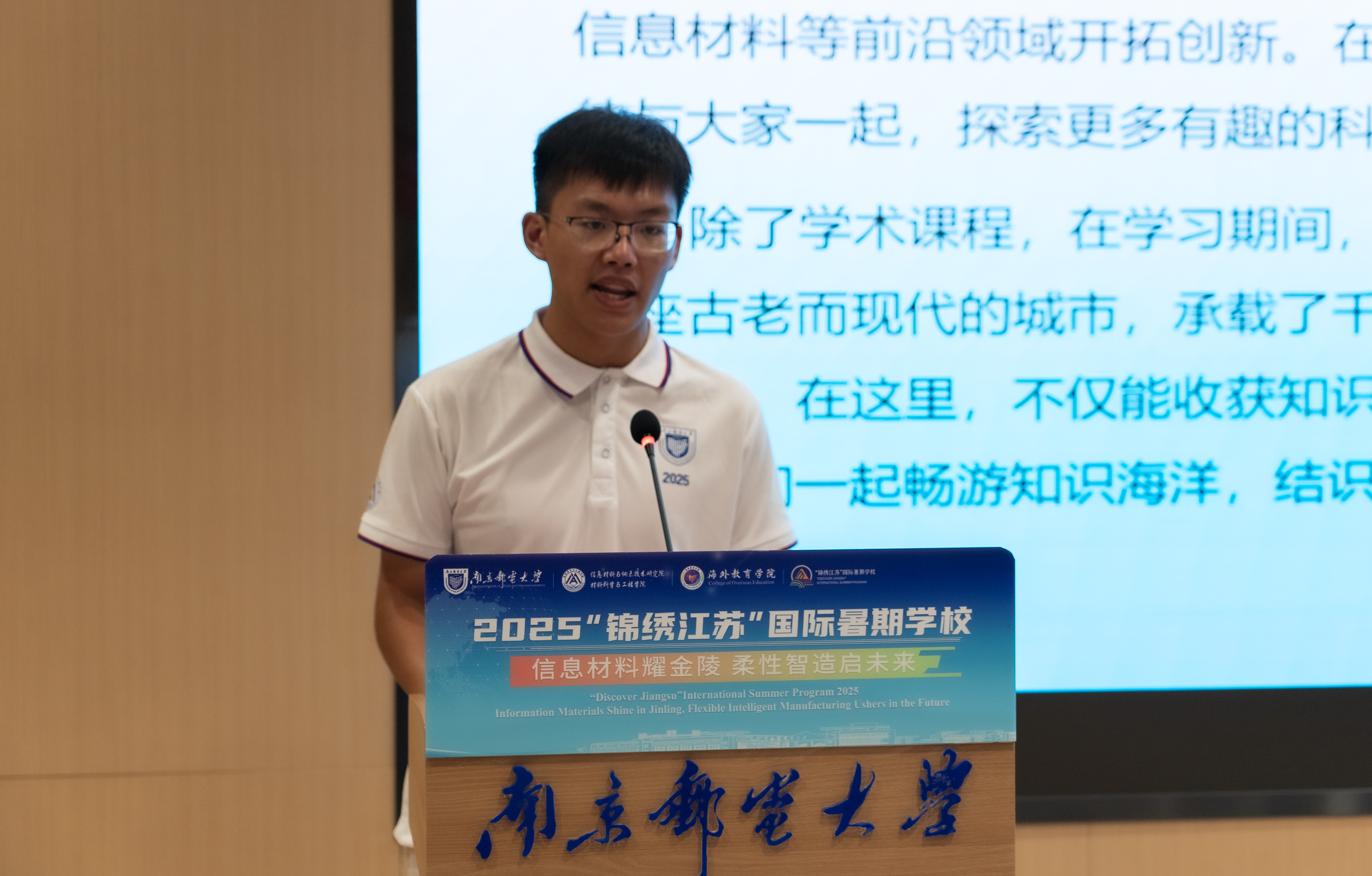 南邮开云体育app下载 周千瑞作为中国学员代表发言,诚挚邀请中外学员一同深入探索南京,领略其历史底蕴与文化魅力,并在信息材料与柔性电子领域学术交流中汲取学科前沿知识,携手合作、共同进步,通过交流搭建友谊桥梁,促进国际理解与共赢。