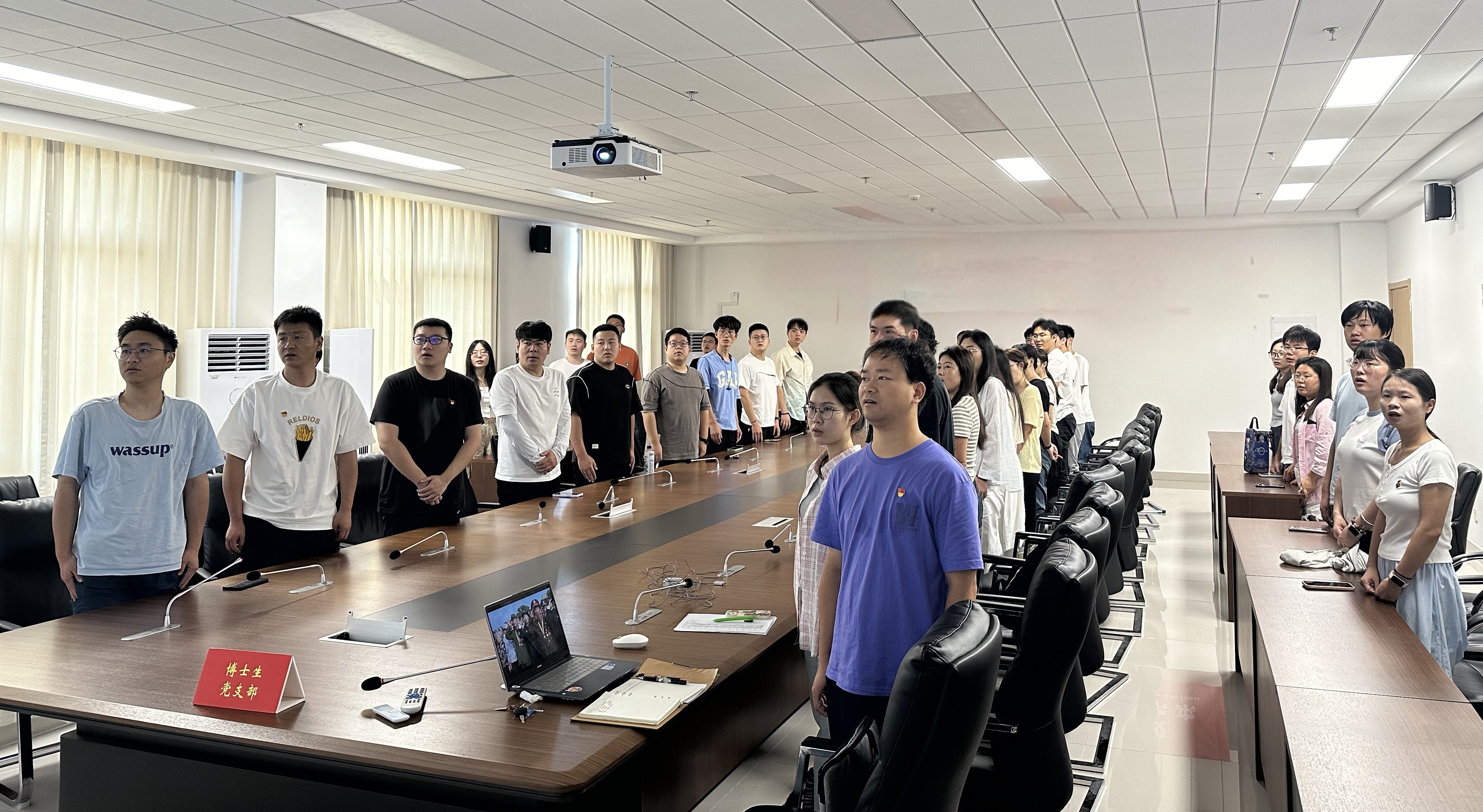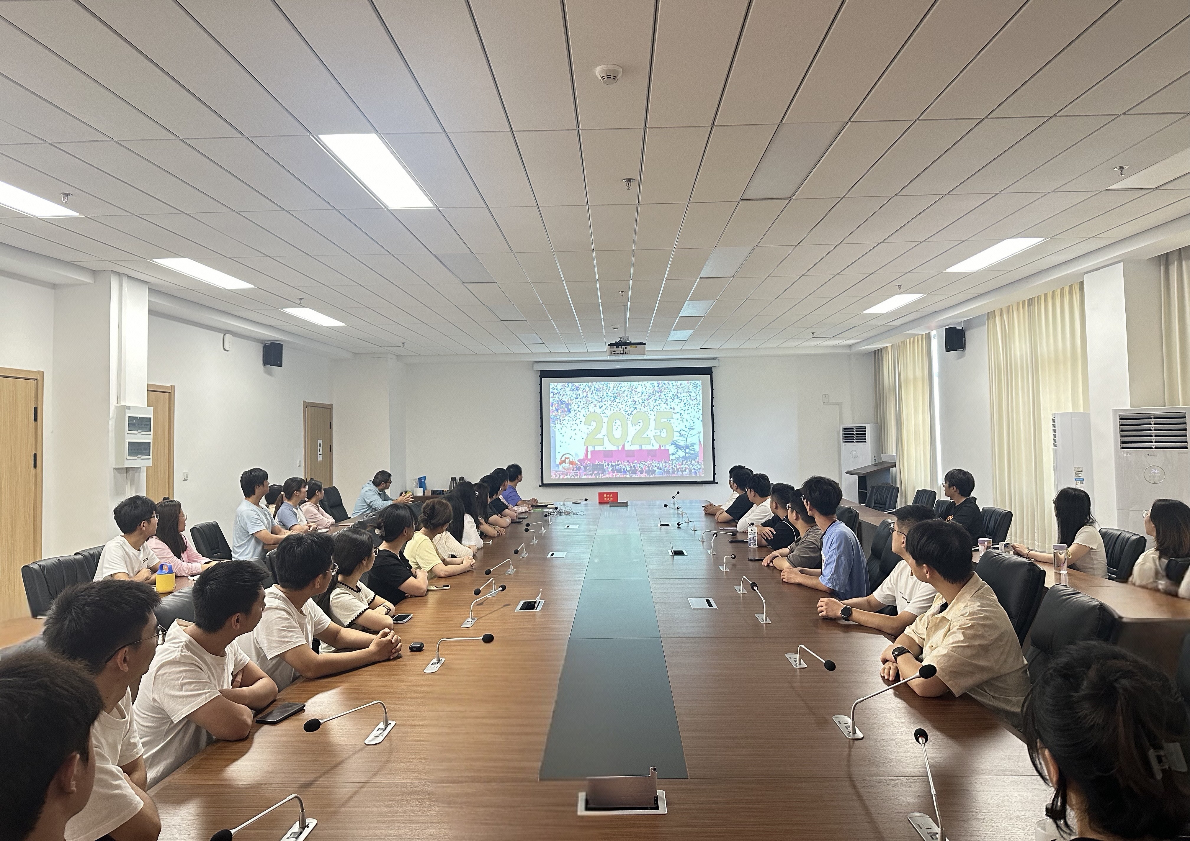 博士生党支部组织支部全体党员和入党积极分子,于材料学科楼219会议室集中收看“纪念中国人民抗日战争暨世界反法西斯战争胜利80周年大会”实况直播。大会庄严肃穆,阅兵仪式气势恢宏,大家深受震撼,倍感自豪。