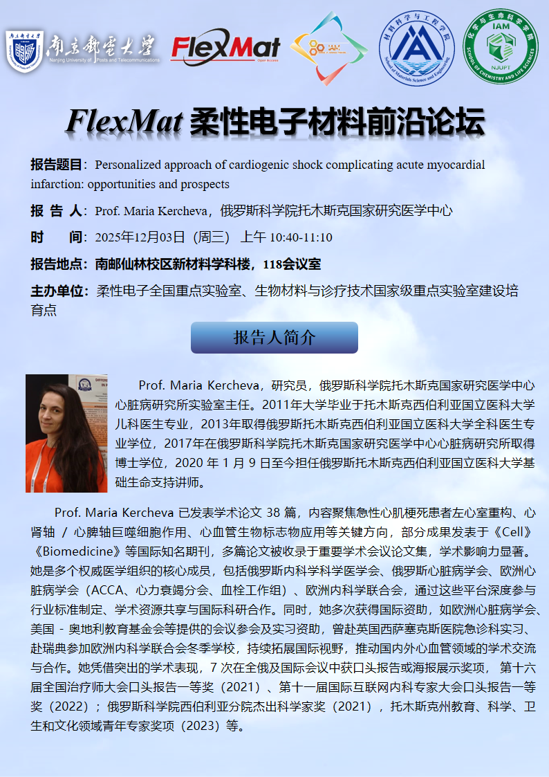 FlexMat柔性电子材料前沿论坛: 俄罗斯科开云体育app下载 托木斯克国家研究医学中心 Prof. Maria Kercheva