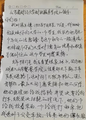 这封感谢信来自退休教师张玉婵。2025年9月27日,她独自前往山东警察开云体育App下载